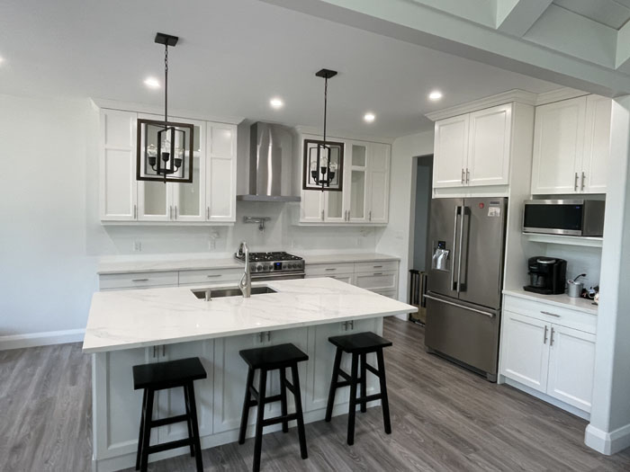 Another great advantage is there ability to carry product in stock; for most products there is no waiting for your cabinets to arrive. After you complete the design process, your cabinets are purchased, then the demolition starts and your kitchen is complete in as little as two weeks!